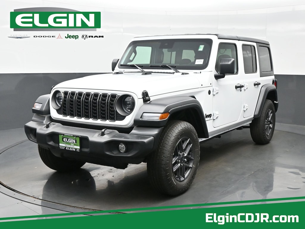 Bright White Clearcoat 2025 Jeep Wrangler Sport S 4WD 8-Speed Automatic 3.6L V6 24V VVT 2-Door Passive Entry, Front Door Locks, 7 & 4 Pin Wiring Harness, Advanced Brake Assist, Air Conditioning w/Auto Temperature Control, Air Filtering, Automatic Headlamps, Auxiliary Switches, Class II Receiver Hitch, Cluster 7.0" TFT Color Display, Convenience Group, Corning Gorilla Glass, Deep Tint Sunscreen Windows, Emergency/Assistance Call, Enhanced Adaptive Cruise Control, Front LED Fog Lamps, Full Speed Forward Collision Warning Plus, Heated Front Seats, Heated Steering Wheel, LED Headlamp & Fog Lamp Group, LED Premium Reflector Headlamps, Power Heated Mirrors, Premium Wrapped Steering Wheel, Quick Order Package 24S Sport S, Remote Start System, Security Alarm, Sun Visors w/Illuminated Vanity Mirrors, Trailer Tow & Aux Switch Group, Universal Garage Door Opener, Wheels: 17" x 7.5" Gray.